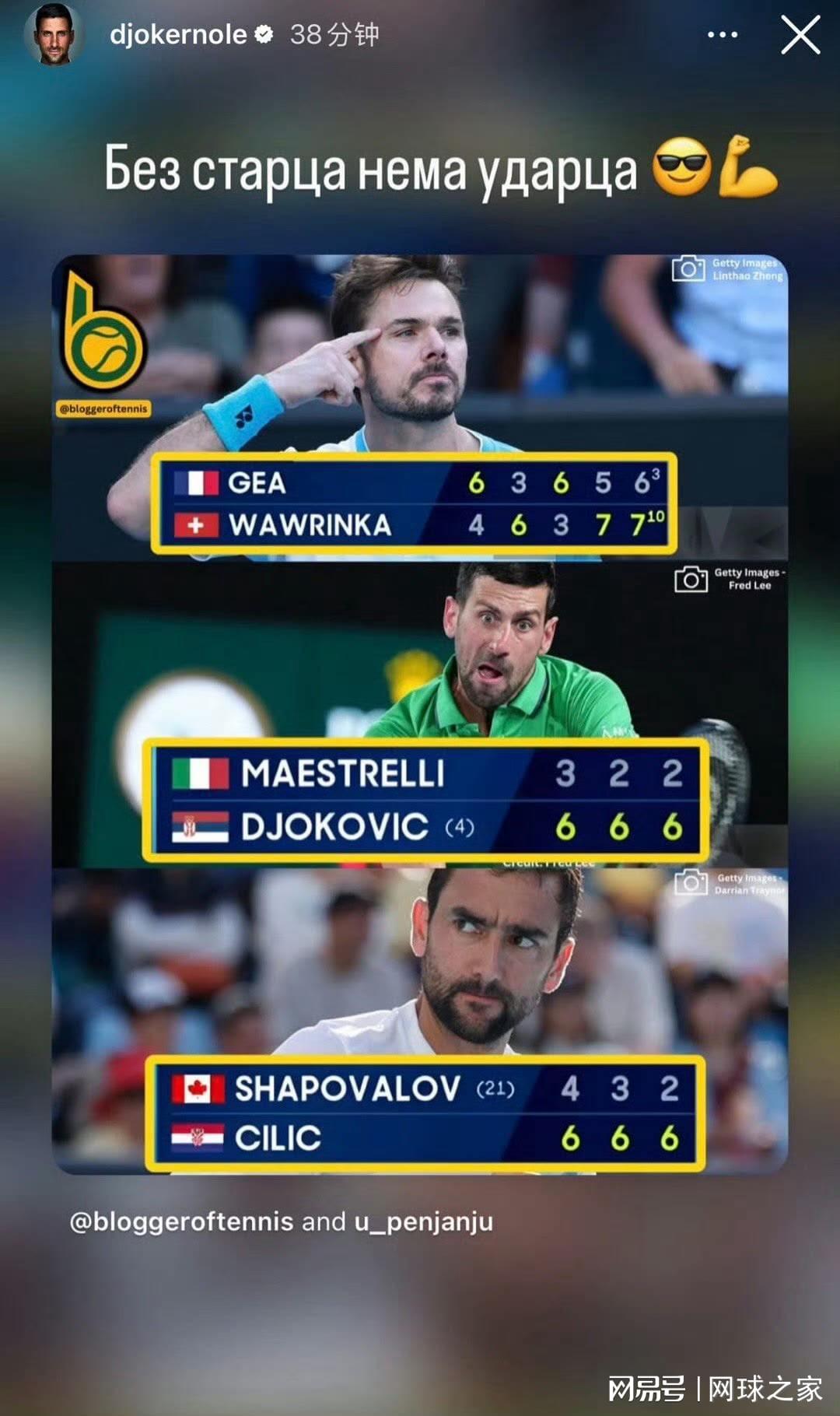 德约则同样值得我们送上致敬的掌声,因为他已经倾尽所有,在以如此高龄的情况下还能够对阵辛纳过关,且比一个小十几岁又多休息了几个小时的后生先拿下一盘,你无法奢求他还能做得更多。