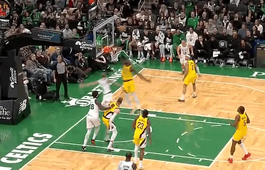 比赛的第四节,怀特上篮打进,绿军重新领先到21分步行者叫出最后一个暂停。